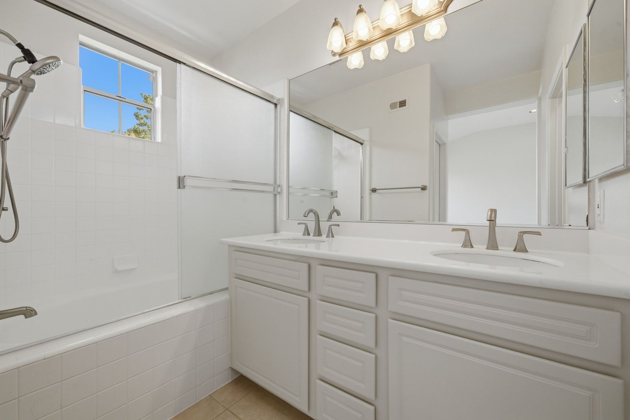 Upstairs includes three generously sized bedrooms. The primary suite features a walk-in closet and a dual-sink en-suite bathroom that makes every day feel a little more luxurious.