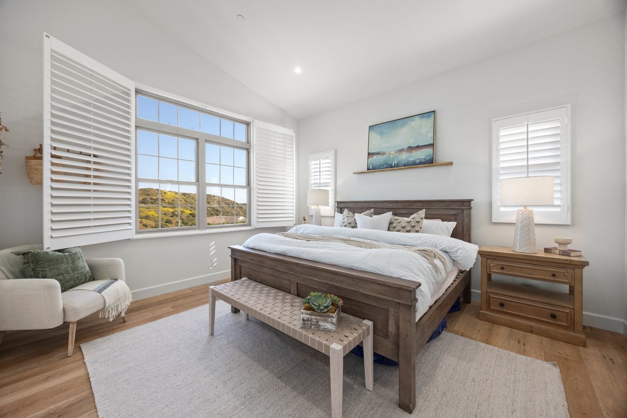 Tucked away on a quiet, single-loaded street with no neighbors behind you and sweeping views of Irvine’s rolling hills, 214 Canterbury is the private hillside retreat you've been looking for! This designer-upgraded residence in the highly sought-after Sierra community of Portola Springs offers the perfect balance of serenity, sophistication, and smart living. Spanning approximately 2,704 sq. ft., this 4-bedroom, 4.5-bathroom home is flooded with natural light and brimming with upgrades at every turn. The open-concept main level features luxury vinyl plank flooring, soaring ceilings, and a chef-inspired kitchen complete with quartz countertops, a spacious island, custom wooden shelving, designer pendant lights, and an abundance of cabinetry. Custom drapery and plantation shutters elevate the space, while the downstairs bedroom and full bath are ideal for guests, in-laws, or multi-generational living. Upgraded metal stair railings and a lovely sandstone fireplace add contemporary flair. Each upstairs bedroom is generously sized and features its own en-suite bathroom and stylish wallpaper accents. The primary suite is a true escape, offering vaulted ceilings, a spa-like bathroom that’s barely been used, a soaking tub, and a spacious walk-in closet. The real showstopper? A third-floor bonus room adorned with custom wood beams presents endless possibilities. Whether you use it as a home theater, office, playroom, or lounge, the oversized deck just outside provides unobstructed panoramic views of the surrounding hills—your own slice of Irvine paradise. Consider extending the indoor living space by enclosing the balcony, further enhancing the usability and value of the home. Out back, enjoy a private yard designed for entertaining, complete with glass fencing, lush artificial turf, and string lights that create a warm and inviting atmosphere under the stars. And with fully paid-off solar panels, this home is as energy-efficient as it is beautiful, saving you on electricity while powering all your EVs with ease. Live just moments from Monarch Park, resort-style pools, top-rated Irvine Unified schools, and miles of hiking and biking trails. This is an incredible opportunity to enjoy a stunning home with unobstructed views without sacrificing convenience or community - don't miss it!