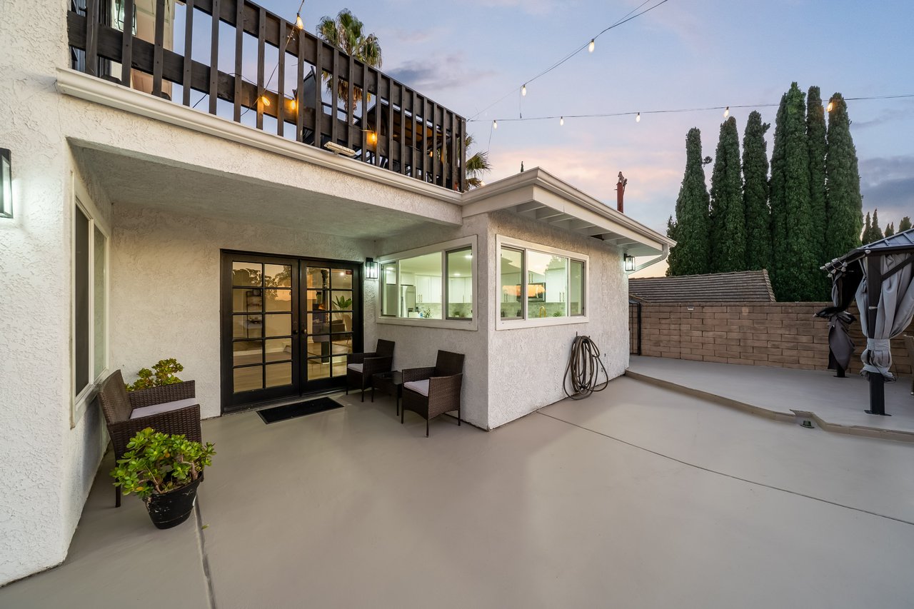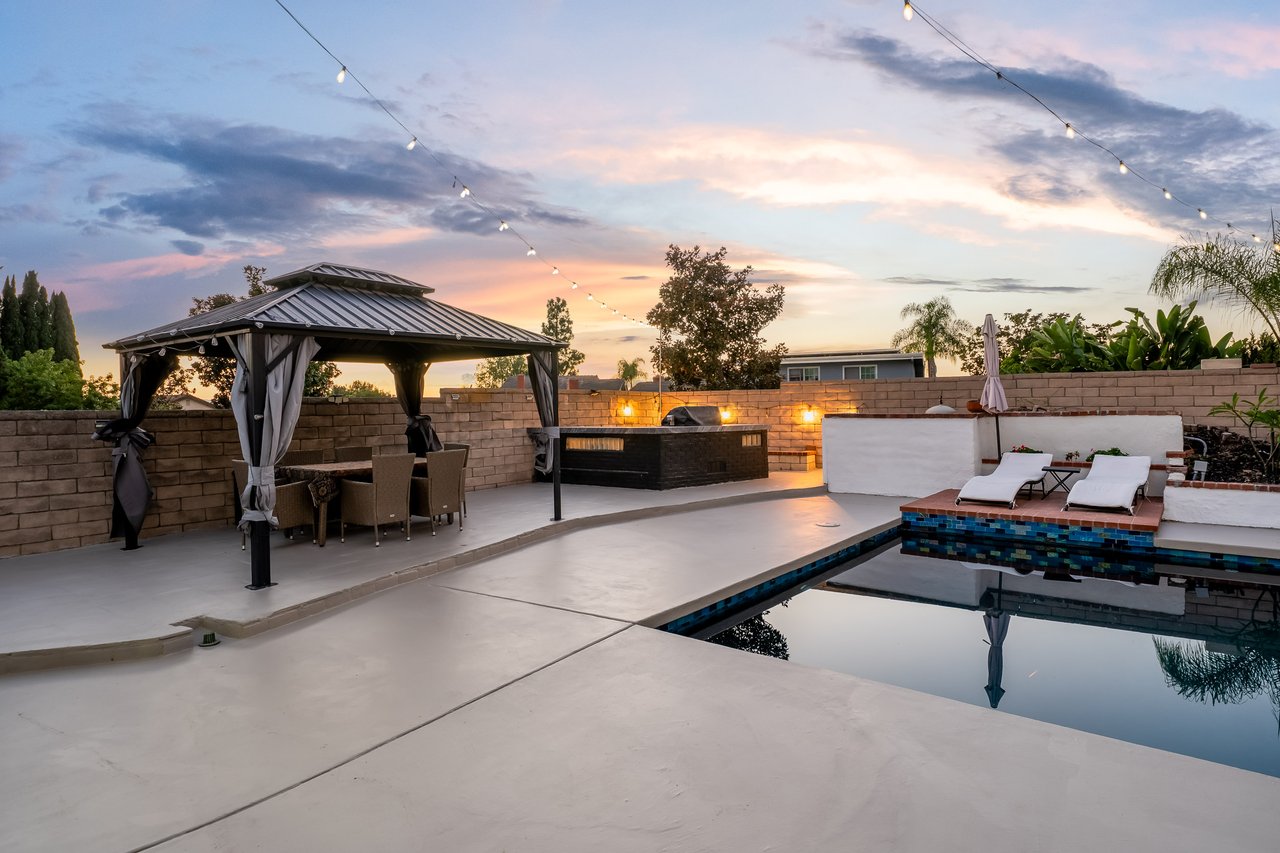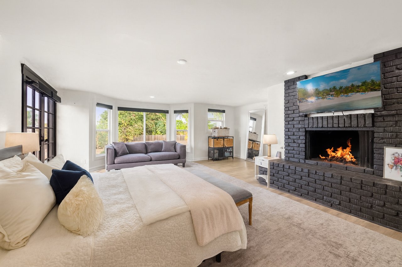 This beautifully updated home blends modern luxury with everyday comfort, featuring three private bedroom suites, each with its own remodeled bathroom complete with dual sinks and walk-in showers. One suite is conveniently located downstairs, while the primary suite upstairs offers a fireplace, walk-in closet, vanity, bay window overlooking the pool, French doors to a private balcony, and a luxurious bathroom with a freestanding tub and walk-in shower. Double doors open to a high-ceiling entry and a bright living room with a fireplace that flows seamlessly into the dining area. The kitchen has been fully updated with quartz countertops, a designer backsplash, and opens to a spacious family room with a wet bar and fireplace. Outside, the newly remodeled backyard has been completely transformed with fresh concrete, a sleek epoxy finish, and new BBQ countertops, creating an entertainer’s dream space beside the sparkling pool. Additional upgrades include a brand-new HVAC system upstairs and in the garage, fresh paint of coat on the walls, and epoxy flooring in the garage for a clean, polished look. With paid-off solar panels, no Mello Roos, and no HOA, this turnkey home is ready to impress!
