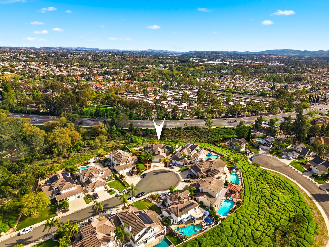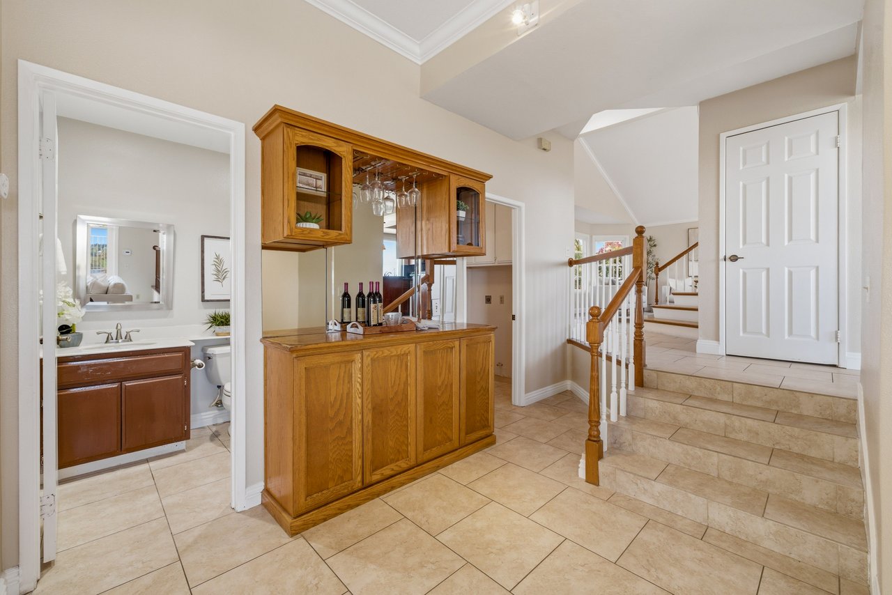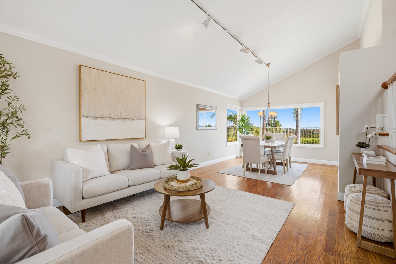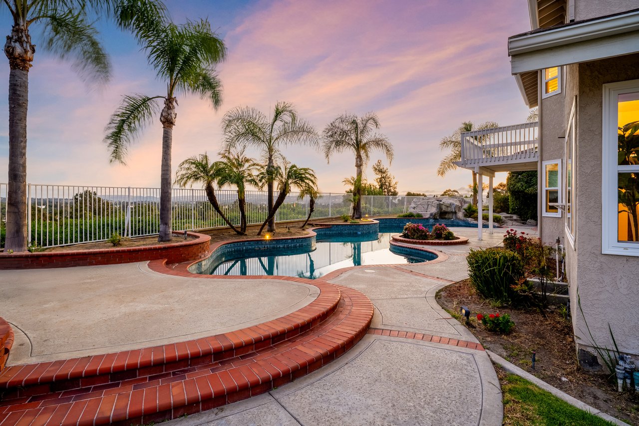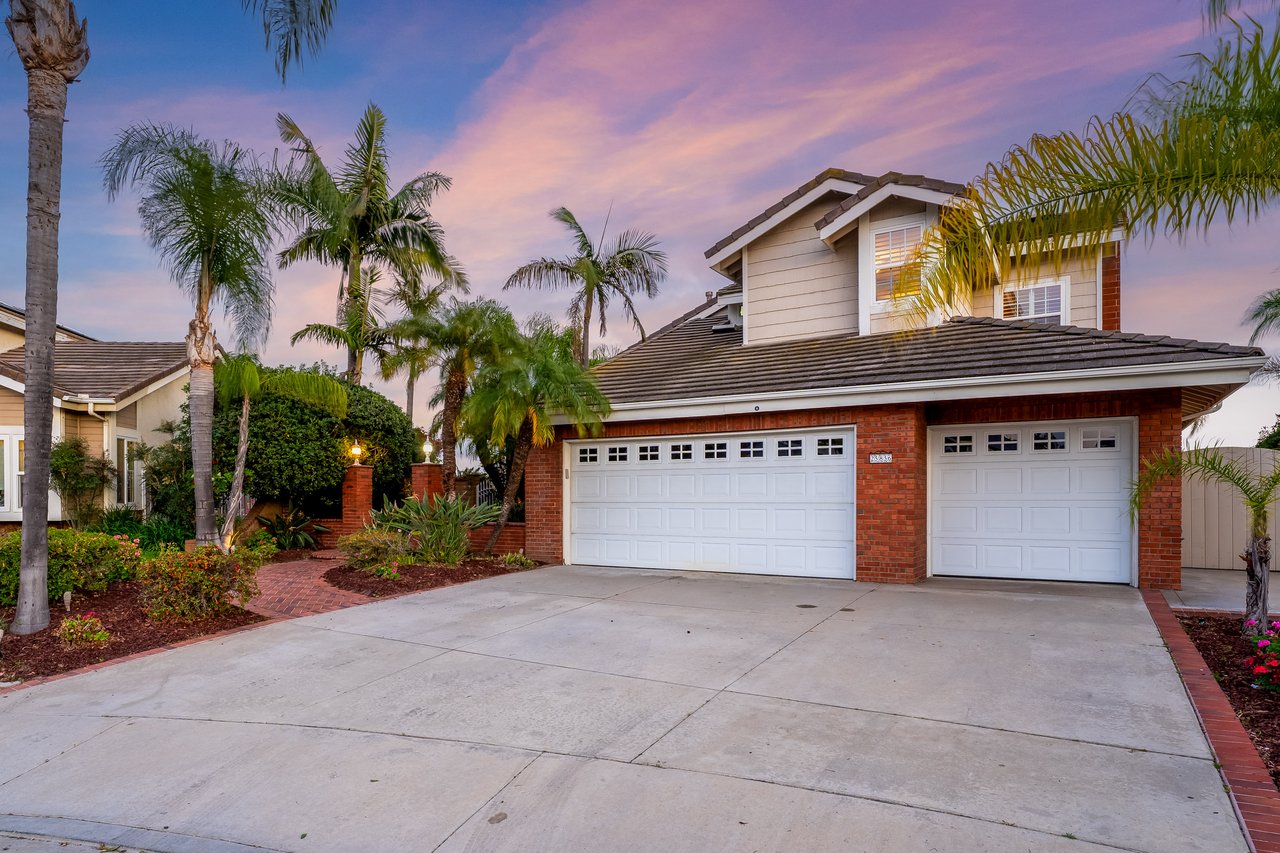 Welcome to your dream home at 25856 Windsong in Lake Forest, a truly one-of-a-kind two-story residence tucked away on a quiet cul-de-sac with breathtaking valley views, exceptional privacy, and abundant natural light throughout. This beautifully maintained home offers 4 bedrooms and 3 fully remodeled bathrooms across 2,246 square feet, situated on an expansive 8,800 square-foot pie-shaped lot. The bright and airy interior features vaulted ceilings, dual-pane windows and sliders, a formal living and dining area with bay windows, and a remodeled kitchen with a breakfast nook and outstanding views,seamlessly connecting to a separate family room with direct access to the backyard. The main level includes a downstairs bedroom, a three-quarter bathroom with walk-in shower, a dedicated laundry room with side-by-side washer and dryer, and generous garage storage. Upstairs, the primary suite impresses with vaulted ceilings, incredible light, a spacious bathroom with dual sinks, walk-in shower, separate soaking tub, and a large walk-in closet, along with two additional bedrooms and a remodeled hallway bathroom. The backyard is a private oasis featuring a large pool, spa/Jacuzzi, built-in barbecue area, and expansive grass space—perfect for entertaining or relaxing—while additional highlights include a whole house fan, solar panels to help keep energy costs down, a quiet setting away from the freeway, and a move-in-ready condition that is rarely found in a home offering this combination of views, lot size, and floor plan.