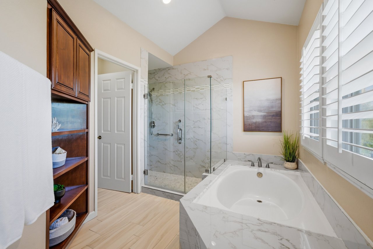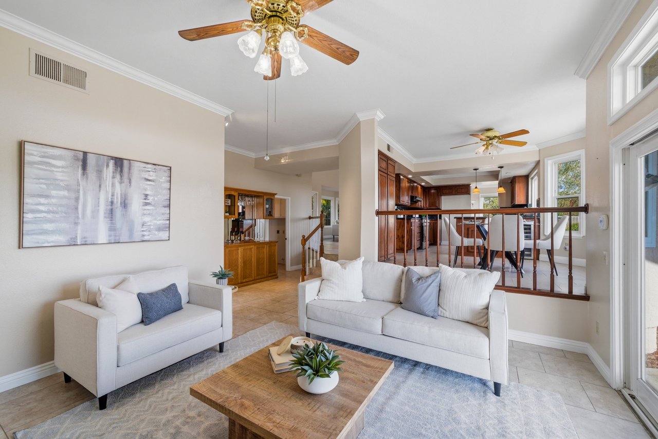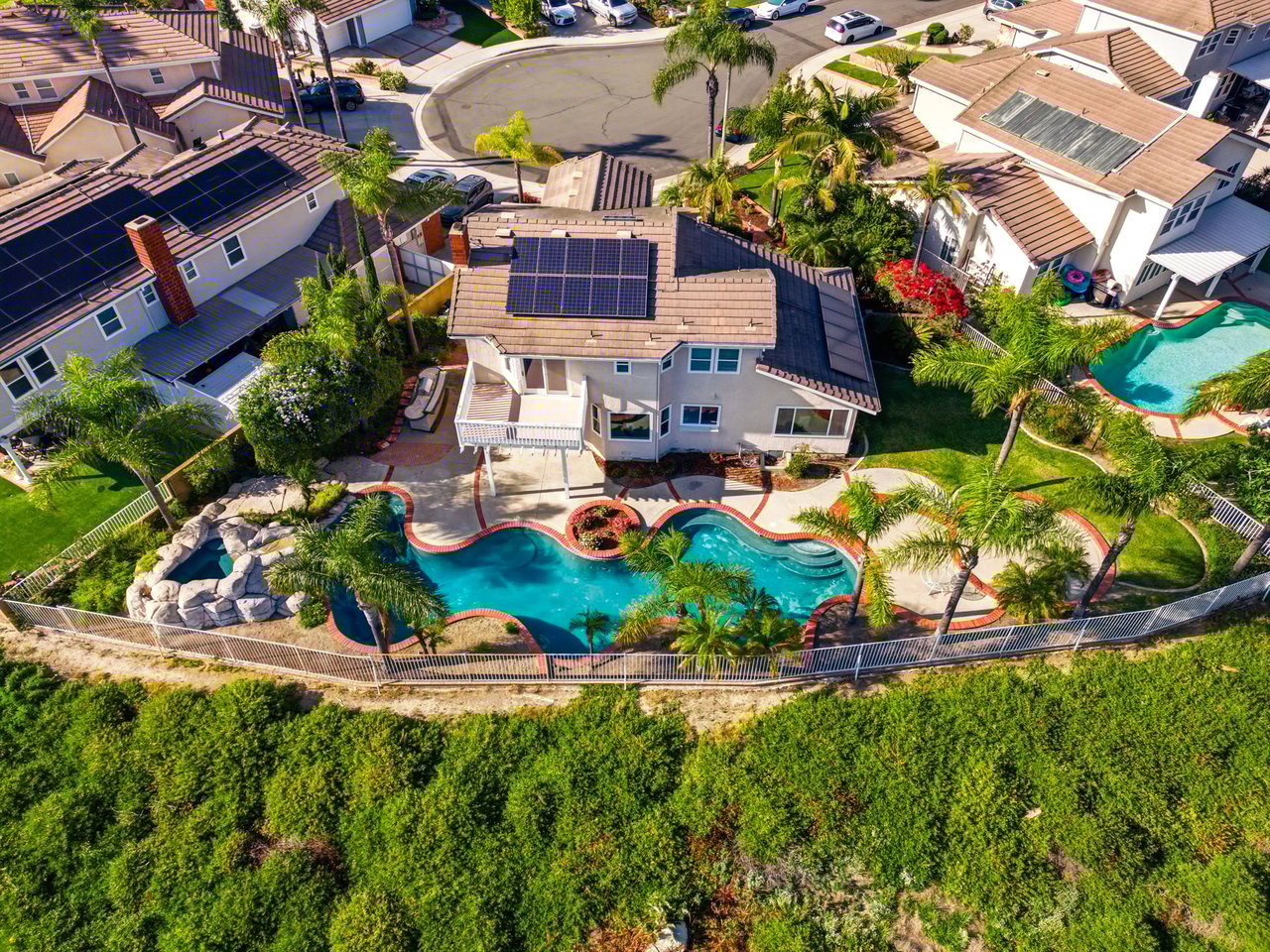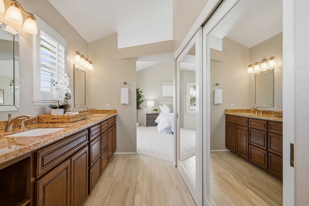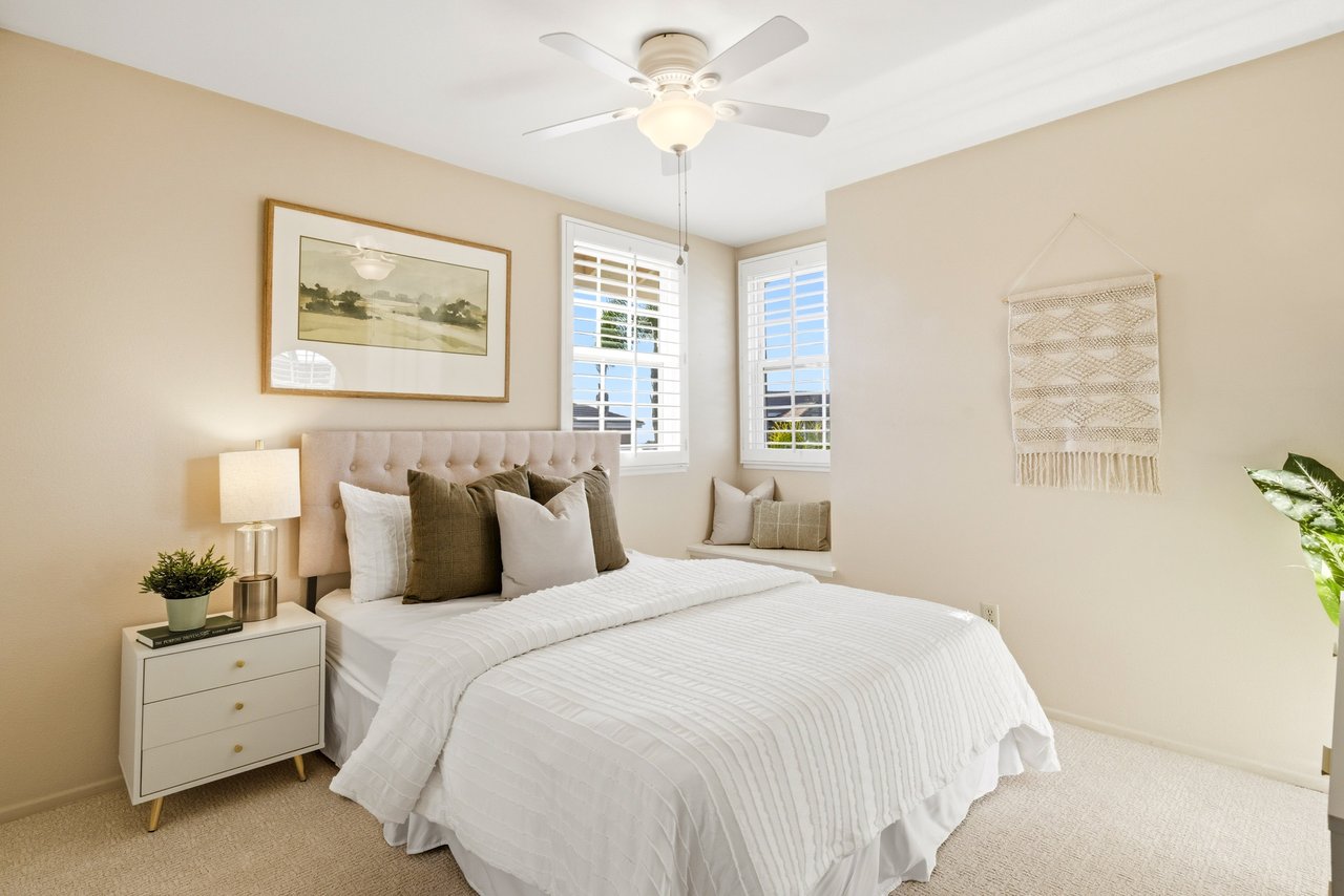 Welcome to your dream home at 25856 Windsong in Lake Forest, a truly one-of-a-kind two-story residence tucked away on a quiet cul-de-sac with breathtaking valley views, exceptional privacy, and abundant natural light throughout. This beautifully maintained home offers 4 bedrooms and 3 fully remodeled bathrooms across 2,246 square feet, situated on an expansive 8,800 square-foot pie-shaped lot. The bright and airy interior features vaulted ceilings, dual-pane windows and sliders, a formal living and dining area with bay windows, and a remodeled kitchen with a breakfast nook and outstanding views,seamlessly connecting to a separate family room with direct access to the backyard. The main level includes a downstairs bedroom, a three-quarter bathroom with walk-in shower, a dedicated laundry room with side-by-side washer and dryer, and generous garage storage. Upstairs, the primary suite impresses with vaulted ceilings, incredible light, a spacious bathroom with dual sinks, walk-in shower, separate soaking tub, and a large walk-in closet, along with two additional bedrooms and a remodeled hallway bathroom. The backyard is a private oasis featuring a large pool, spa/Jacuzzi, built-in barbecue area, and expansive grass space—perfect for entertaining or relaxing—while additional highlights include a whole house fan, solar panels to help keep energy costs down, a quiet setting away from the freeway, and a move-in-ready condition that is rarely found in a home offering this combination of views, lot size, and floor plan.