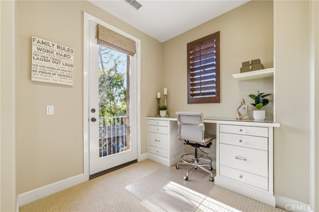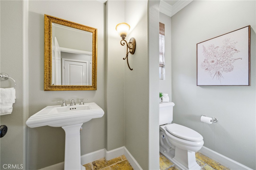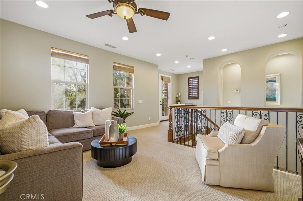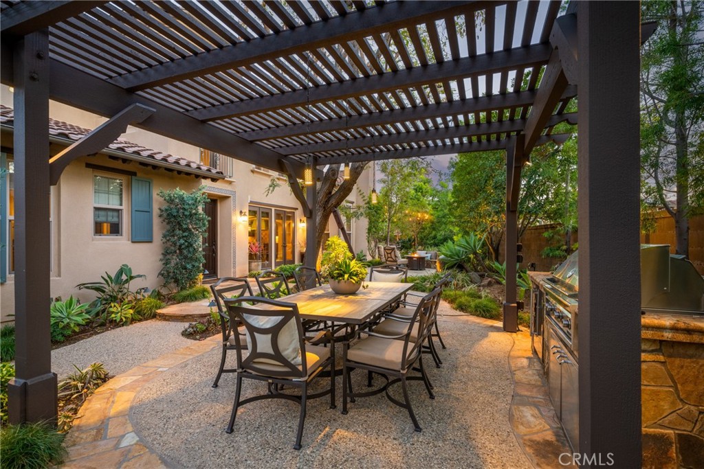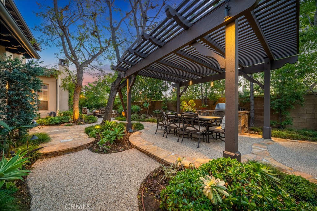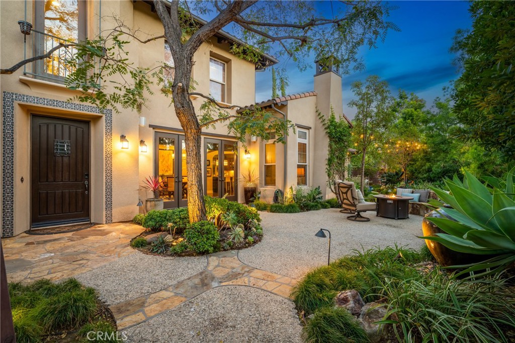30 Deer Track in Irvine presents a rare opportunity in the highly sought-after Los Colinas community of Portola Springs. This beautifully upgraded home offers 4 bedrooms and 4.5 bathrooms across approximately 2,933 square feet, set on an exceptional 7,971-square-foot corner lot on a quiet, private street--an incredibly rare find in Irvine. With over $240,000 in upgrades throughout, the home blends luxury, comfort, and thoughtful design. A welcoming courtyard opens to an expansive side yard that feels like a private retreat, complete with a large patio cover, barbecue and seating area, custom landscape lighting, mature trees, a fireplace with built-in bench seating, and a tranquil water feature--perfect for entertaining or relaxing. Inside, a formal entryway leads to a front executive office that can also function as a downstairs bedroom. The home was originally designed with a builder option to convert this space into a bedroom while converting the nearby half bath into a full bathroom, allowing it to function as a five-bedroom, four-bathroom residence if desired. One of the most desirable features is the true primary suite on the first floor. The formal dining room flows into the spacious living area and kitchen, featuring granite countertops, a large center island, stainless steel appliances including a built-in refrigerator, recessed lighting, and a farmhouse sink. The kitchen connects to the laundry room and three-car garage. The living room is warm and inviting with a fireplace and large windows overlooking the lush backyard. The first-floor primary suite includes crown molding and a ceiling fan, while the primary bathroom features travertine flooring, dual sinks, a soaking tub, a walk-in shower, and a spacious walk-in closet. Upstairs, a large loft offers flexible living space and can easily be converted into an additional bedroom, as it includes its own full bathroom. The second floor also features a built-in office area, a full hallway bathroom, and two spacious secondary bedrooms, one with a private balcony. The home includes solar and is zoned for Portola Springs Elementary, Jeffrey Trail Middle School, and Portola High School. With its rare oversized lot, privacy, flexible floor plan, and exceptional outdoor living space, this home truly stands out in today's market.