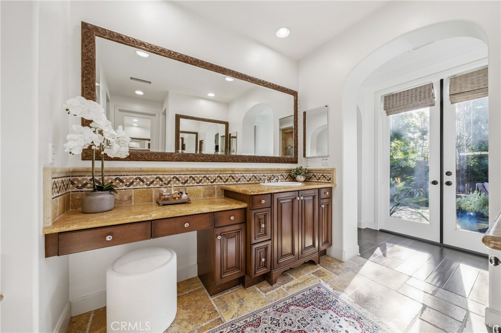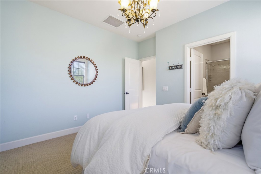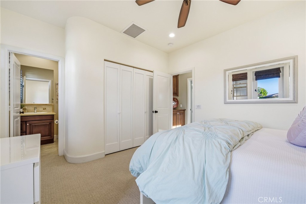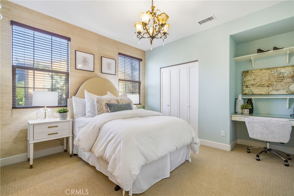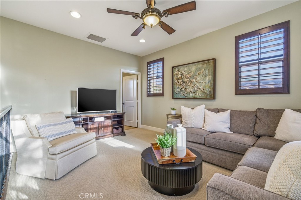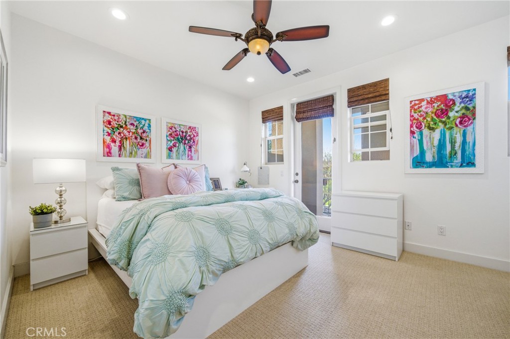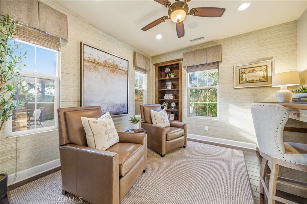 30 Deer Track in Irvine presents a rare opportunity in the highly sought-after Los Colinas community of Portola Springs. This beautifully upgraded home offers 4 bedrooms and 4.5 bathrooms across approximately 2,933 square feet, set on an exceptional 7,971-square-foot corner lot on a quiet, private street--an incredibly rare find in Irvine. With over $240,000 in upgrades throughout, the home blends luxury, comfort, and thoughtful design. A welcoming courtyard opens to an expansive side yard that feels like a private retreat, complete with a large patio cover, barbecue and seating area, custom landscape lighting, mature trees, a fireplace with built-in bench seating, and a tranquil water feature--perfect for entertaining or relaxing. Inside, a formal entryway leads to a front executive office that can also function as a downstairs bedroom. The home was originally designed with a builder option to convert this space into a bedroom while converting the nearby half bath into a full bathroom, allowing it to function as a five-bedroom, four-bathroom residence if desired. One of the most desirable features is the true primary suite on the first floor. The formal dining room flows into the spacious living area and kitchen, featuring granite countertops, a large center island, stainless steel appliances including a built-in refrigerator, recessed lighting, and a farmhouse sink. The kitchen connects to the laundry room and three-car garage. The living room is warm and inviting with a fireplace and large windows overlooking the lush backyard. The first-floor primary suite includes crown molding and a ceiling fan, while the primary bathroom features travertine flooring, dual sinks, a soaking tub, a walk-in shower, and a spacious walk-in closet. Upstairs, a large loft offers flexible living space and can easily be converted into an additional bedroom, as it includes its own full bathroom. The second floor also features a built-in office area, a full hallway bathroom, and two spacious secondary bedrooms, one with a private balcony. The home includes solar and is zoned for Portola Springs Elementary, Jeffrey Trail Middle School, and Portola High School. With its rare oversized lot, privacy, flexible floor plan, and exceptional outdoor living space, this home truly stands out in today's market.