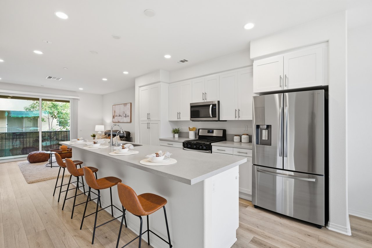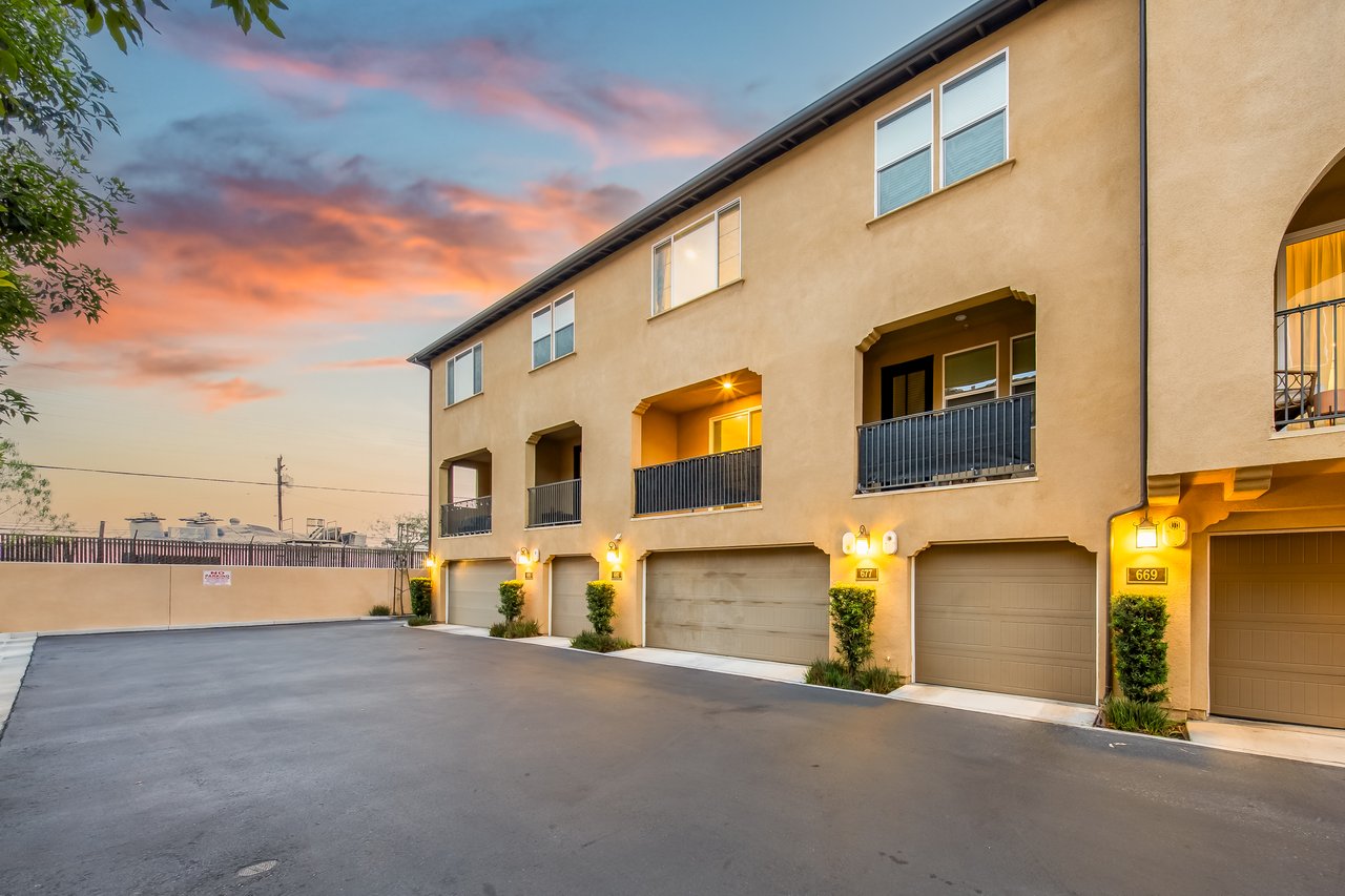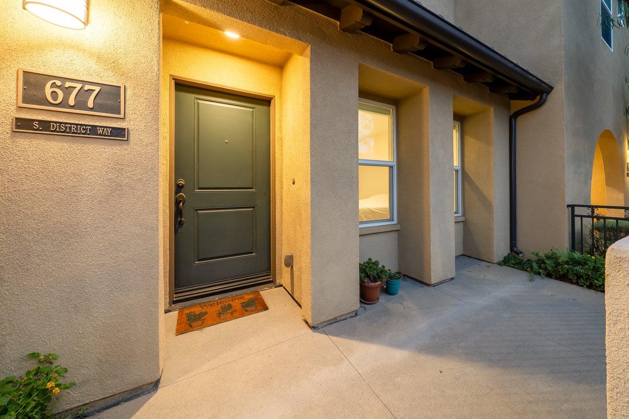Welcome to 677 South District Way — a modern tri-level gem in the sought-after District Walk community of Anaheim. Built in 2019, this 3-bedroom, 3.5-bath home offers 1,678 sq ft of stylish living with thoughtful design and contemporary touches throughout. Step inside to find a private first-floor suite—perfect for guests, in-laws, or a home office—along with an attached two-car garage equipped with epoxy flooring, a tankless water heater, and a water softener system. Upstairs, the open-concept second floor showcases a spacious living area with a private balcony, a gourmet kitchen featuring sleek finishes, a separate dining space ideal for entertaining, and a half bath. The third floor features two additional bedroom suites, including a primary retreat with a large walk-in shower and walk-in closet, plus a secondary suite with its own full bath. Convenient upstairs laundry adds everyday ease. Located just minutes from premier shopping, dining, and world-famous Disneyland, this home offers the perfect blend of comfort, convenience, and community. Come experience modern Anaheim living at its finest!