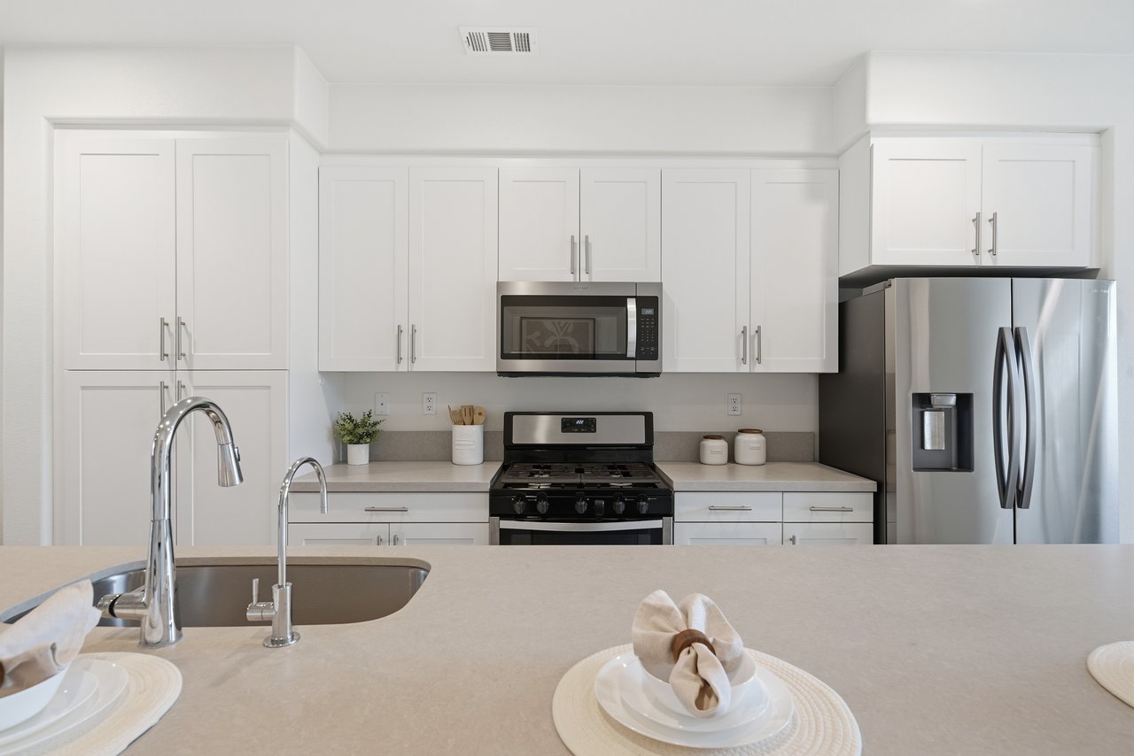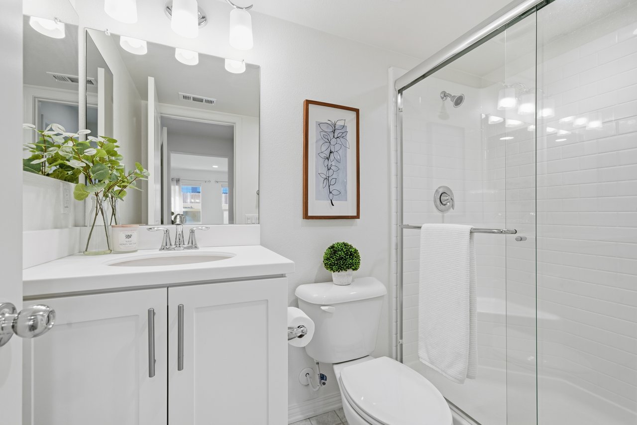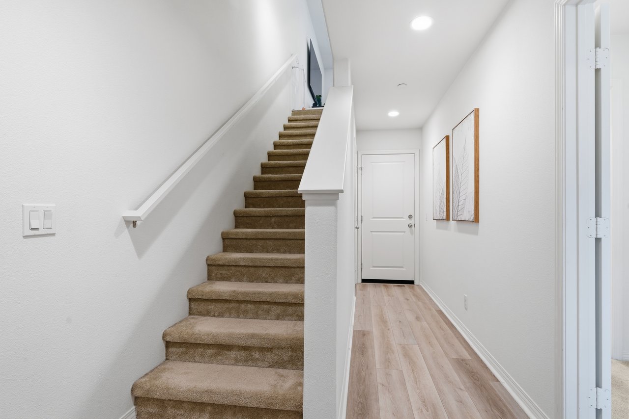 Welcome to 677 South District Way — a modern tri-level gem in the sought-after District Walk community of Anaheim. Built in 2019, this 3-bedroom, 3.5-bath home offers 1,678 sq ft of stylish living with thoughtful design and contemporary touches throughout. Step inside to find a private first-floor suite—perfect for guests, in-laws, or a home office—along with an attached two-car garage equipped with epoxy flooring, a tankless water heater, and a water softener system. Upstairs, the open-concept second floor showcases a spacious living area with a private balcony, a gourmet kitchen featuring sleek finishes, a separate dining space ideal for entertaining, and a half bath. The third floor features two additional bedroom suites, including a primary retreat with a large walk-in shower and walk-in closet, plus a secondary suite with its own full bath. Convenient upstairs laundry adds everyday ease. Located just minutes from premier shopping, dining, and world-famous Disneyland, this home offers the perfect blend of comfort, convenience, and community. Come experience modern Anaheim living at its finest!