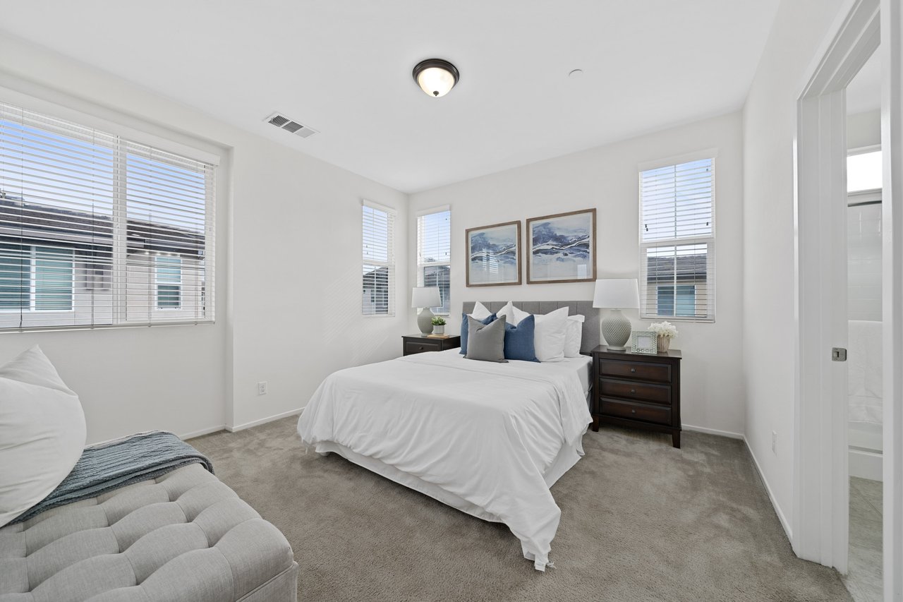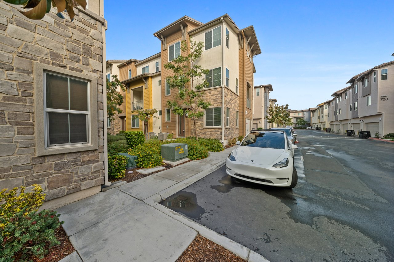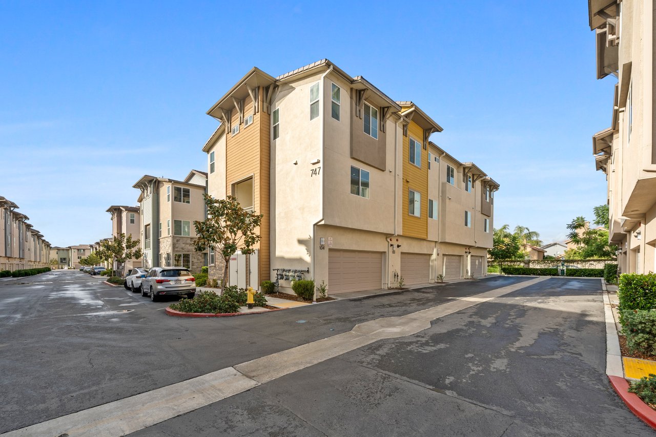 Welcome to 747 Savi Dr #104, a stunning tri-level end-unit townhome in the highly desirable gated community of Boardwalk in Corona! Built in 2019 and impeccably maintained, this 3-bedroom, 2 full bath, 2 half bath home offers 1,675 sq ft of stylish, functional living space. The first floor features a versatile bonus room, a convenient half bath, and direct access to a 2-car garage. Upstairs, the second level boasts a bright open-concept layout with a spacious living room, dining area, a sleek kitchen with a large island, private balcony, and another half bath—perfect for entertaining. On the top floor, you’ll find two well-sized secondary bedrooms, a full hallway bath, and a luxurious primary suite with its own spa-like bath and generous closet space.