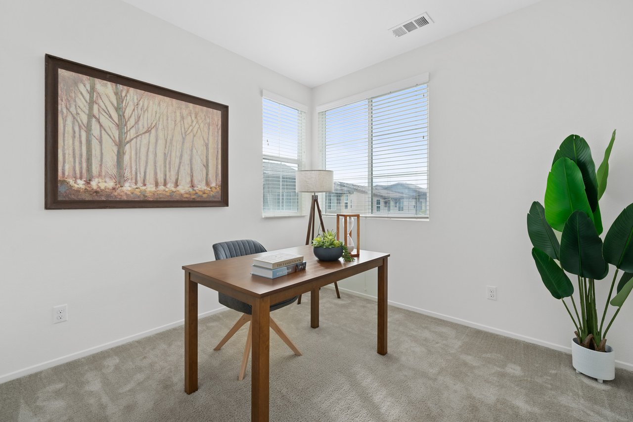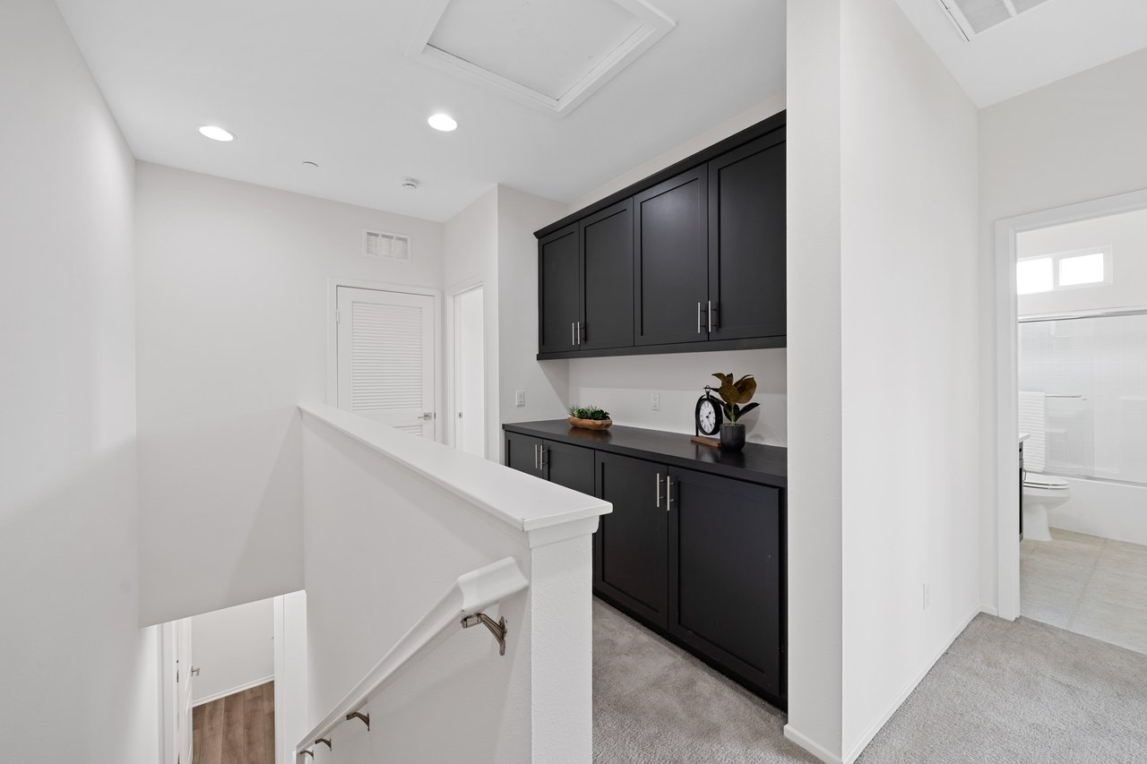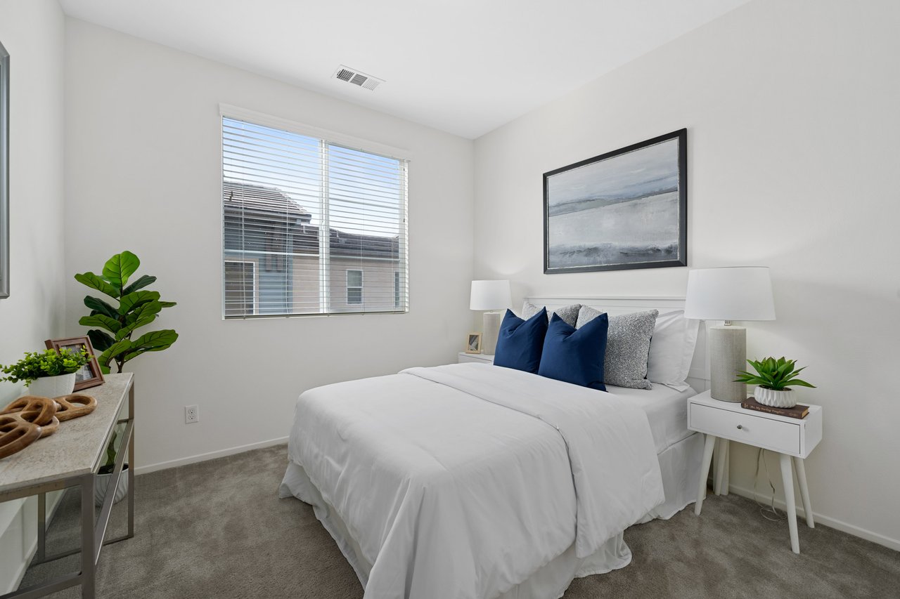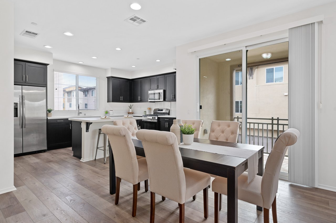 Welcome to 747 Savi Dr #104, a stunning tri-level end-unit townhome in the highly desirable gated community of Boardwalk in Corona! Built in 2019 and impeccably maintained, this 3-bedroom, 2 full bath, 2 half bath home offers 1,675 sq ft of stylish, functional living space. The first floor features a versatile bonus room, a convenient half bath, and direct access to a 2-car garage. Upstairs, the second level boasts a bright open-concept layout with a spacious living room, dining area, a sleek kitchen with a large island, private balcony, and another half bath—perfect for entertaining. On the top floor, you’ll find two well-sized secondary bedrooms, a full hallway bath, and a luxurious primary suite with its own spa-like bath and generous closet space.