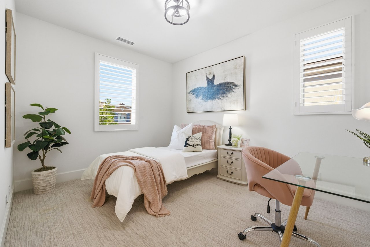 Nestled within the prestigious 24-hour guard-gated enclave of The Groves at Orchard Hills, 84 Rockinghorse offers the perfect blend of luxury, privacy, and the sought-after premium Irvine lifestyle. Built in 2019 with $200K in upgrades, this beautifully-designed single family residence features 3,078 square feet of living space with 4 spacious bedrooms and 4.5 bathrooms, including en-suite bathrooms for every bedroom, creating an ideal layout for multigenerational living, guests, or growing families. The open-concept floorplan seamlessly connects the expansive living, dining, and kitchen areas, while a California Room extends the living space outdoors to the private backyard, perfect for indoor-outdoor entertainment and enjoying Southern California living year-round. Upstairs, an oversized loft offers flexible space for a second living area, media room, home office, or playroom. The luxurious primary suite provides a spa-like retreat with dual vanities, a soaking tub, separate walk-in shower, and a walk-in closet. Set on a generous lot with charming Mediterranean-inspired architecture, the home is surrounded by the scenic avocado groves, rolling hills, and preserved open space that make The Groves one of Irvine's most coveted communities. Residents enjoy a peaceful, resort-like setting with quiet streets, exceptional privacy, and access to world-class amenities including pools, parks, playgrounds, clubhouses, sports courts, and miles of walking trails. Zoned for the highly-regarded Tustin Unified School District, and located just minutes from shopping, dining, schools, and freeway access, this home offers a rare opportunity to join one of Irvine's most prestigious and exclusive neighborhoods.