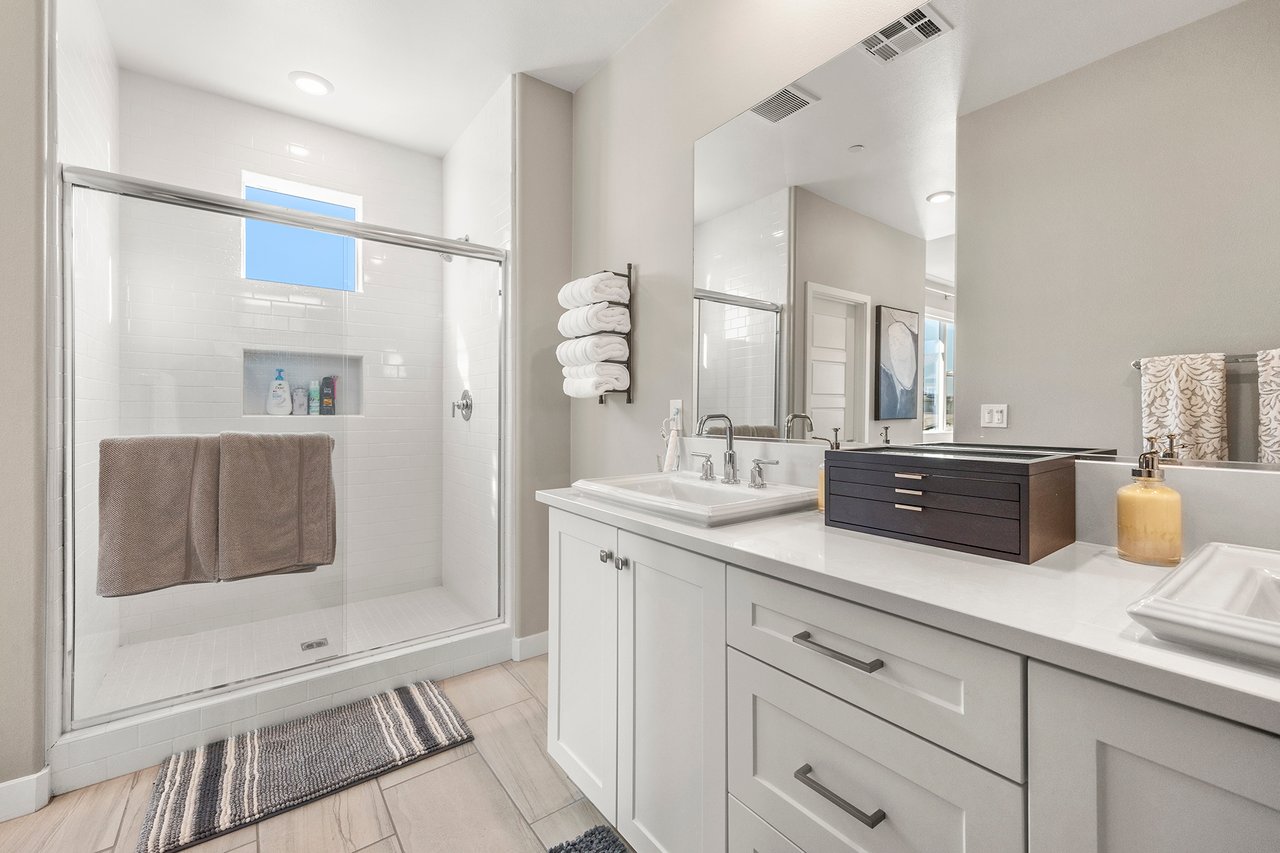 Get ready to fall in love with this gorgeous tri-level home, thoughtfully designed to blend comfort, style, and convenience. With three spacious bedrooms and three and a half bathrooms, there’s room for everyone! The versatile layout offers a private first-floor bedroom and bath, ideal for guests or a home office. The heart of the home lies on the second floor, where a bright and airy living room flows into the upgraded kitchen and dining room, perfect for entertaining. Upstairs, you'll find two additional bedrooms, each with its own bathroom, creating the perfect retreat. The interiors feature a blend of Luxury Vinyl Plank (LVP) flooring and plush upgraded carpeting, adding warmth and elegance. Sunlight pours in through expansive windows, filling the living spaces with natural light. The chef’s kitchen is a dream, with granite countertops, stainless steel appliances, and stylish finishes throughout. Plus, the direct access two-car garage makes parking and storage a breeze. This home is nestled within a vibrant, master-planned community brimming with exciting amenities. Take a dip in the sparkling pool and spa, enjoy gatherings at the BBQ stations and fireplaces, or host events in the outdoor entertaining spaces. Active living is easy with pickleball courts, scenic greenbelts, and multiple parks and playgrounds just steps away. Whether you want to unwind or stay active, this community has it all! Don’t miss out on this incredible opportunity to enjoy a modern lifestyle in a serene neighborhood with amenities for every occasion.
