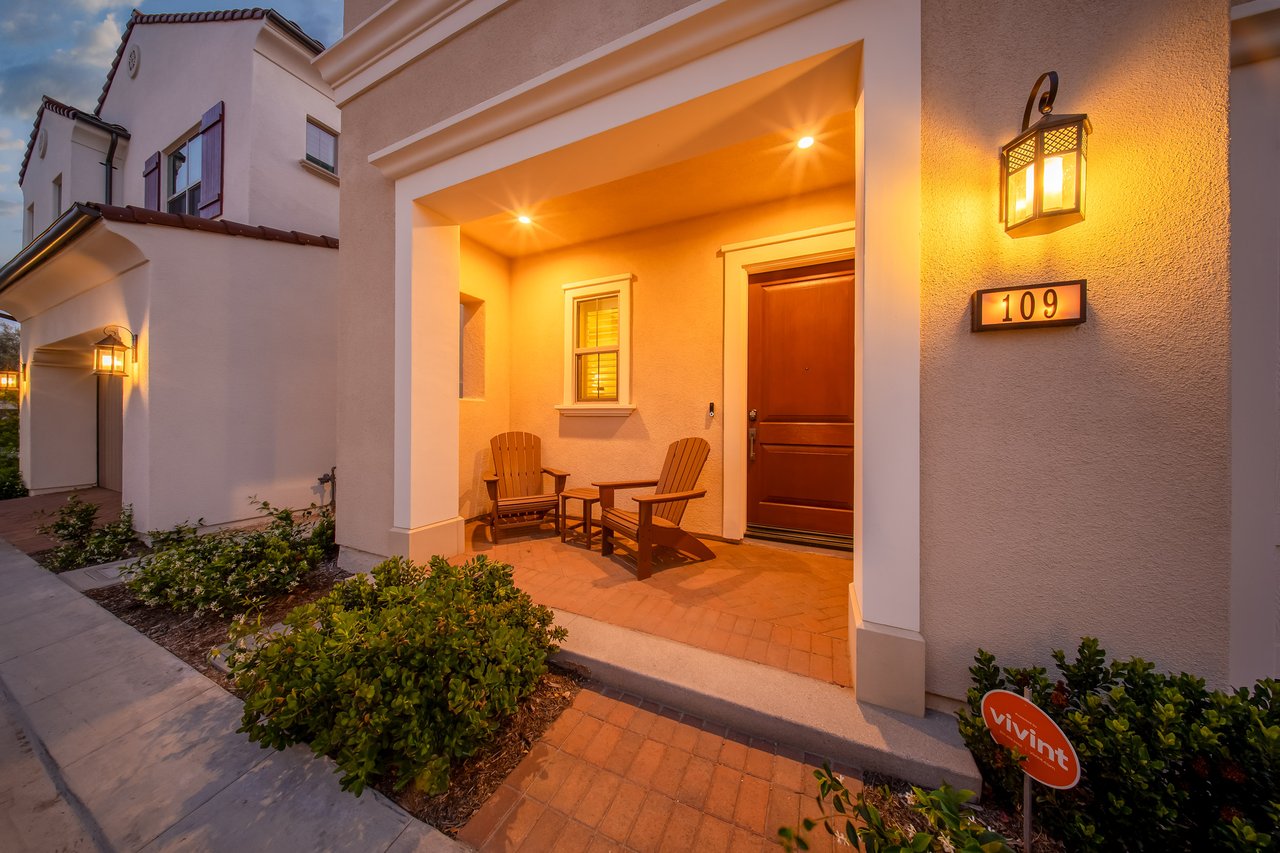 Welcome to 109 Fairgreen, Irvine—where elevated design and effortless California living come together in one of the city’s most peaceful and sought-after neighborhoods. Located within the award-winning Irvine Unified School District and just moments from parks, resort-style pools, and scenic trails, this exceptionally quiet community offers the perfect blend of luxury, comfort, and location. Inside, the home is highlighted by wide-plank laminate flooring, recessed lighting, plantation shutters, custom designer drapery, a custom stair runner that adds warmth and texture, and upgraded fixtures and hardware throughout. The gourmet kitchen is a true centerpiece, showcasing Taj Mahal quartzite countertops that seamlessly extend across the kitchen counters, backsplash, and into the bathrooms, paired with high-end Wolf appliances, a 36-inch Sub-Zero refrigerator, and refined cabinetry for a timeless, designer look. Upstairs, the spa-inspired primary suite features a newly tiled shower, designer-selected tile flooring, and elegant designer wallpaper, creating a serene retreat, while the secondary bathrooms mirror this elevated aesthetic with coordinating tile finishes and designer wallpaper for a cohesive, luxury feel. Expansive panoramic sliding doors invite seamless indoor-outdoor living and open to a private, professionally landscaped backyard with no neighbors to the north and sweeping mountain views overlooking Tomato Springs Park. Additional highlights include a finished garage with epoxy floors, Tesla charger, overhead storage, full interior insulation, a car charger outlet, and paid-off solar panels for energy efficiency. Thoughtfully upgraded and beautifully positioned, 109 Fairgreen is a rare opportunity you won’t want to miss.